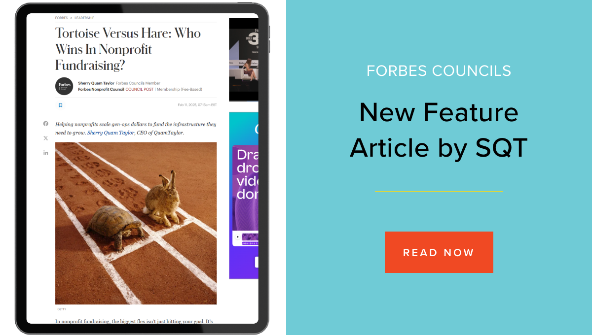 "Bottom line: The nonprofit sector doesn’t need more quick wins or short-lived trends. It needs sustainable strategies, deep relationships and long-term thinking. With the right mindset and systems, your organization can ditch the year-end fire drill and start building the reserves, relationships and results you’ve always envisioned. Are you ready to slow down and win the race?." - Sherry Quam Taylor
