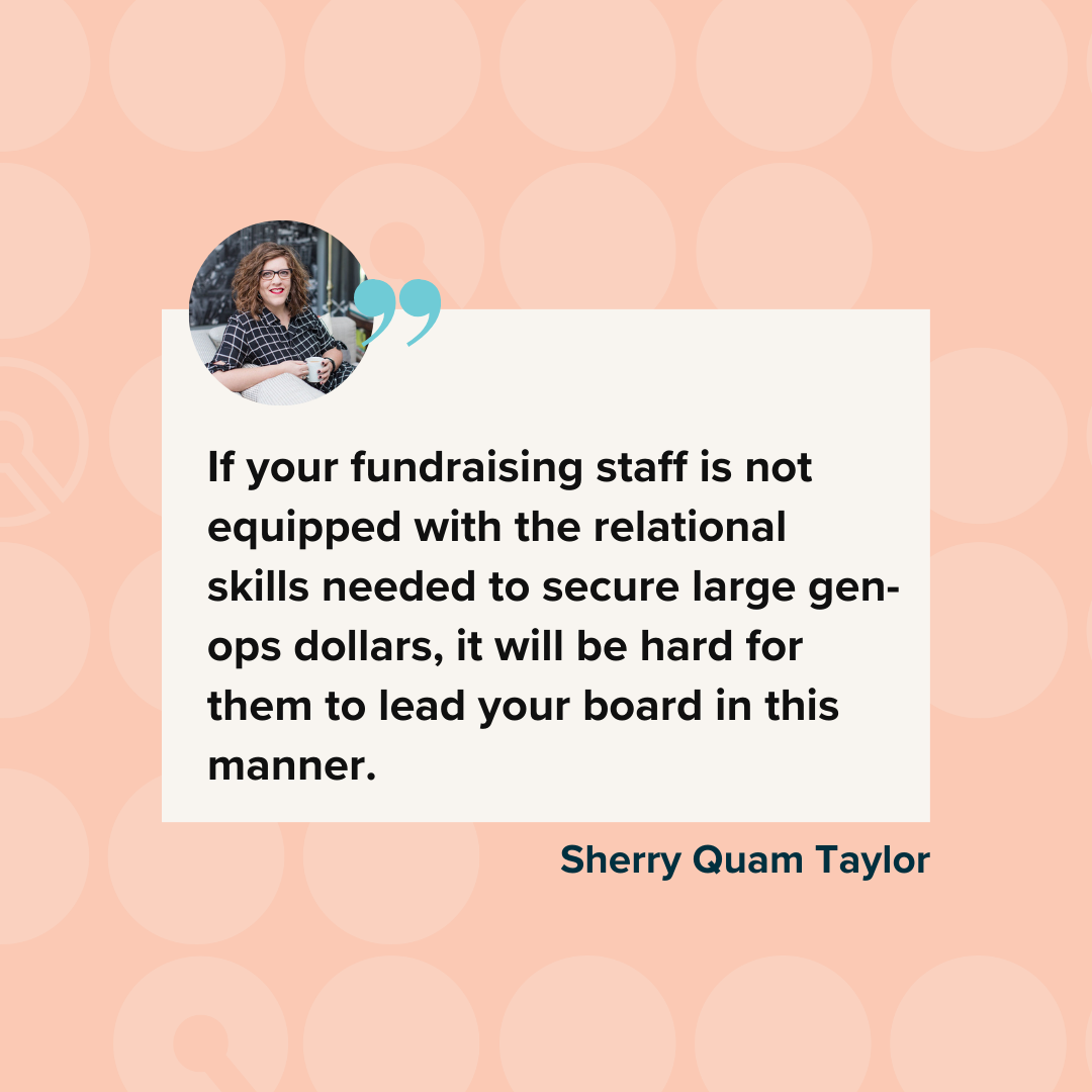 If your fundraising staff is not equipped with the relational skills they need to secure larger, general-operating dollars, it will be hard for them to lead your board in this manner.