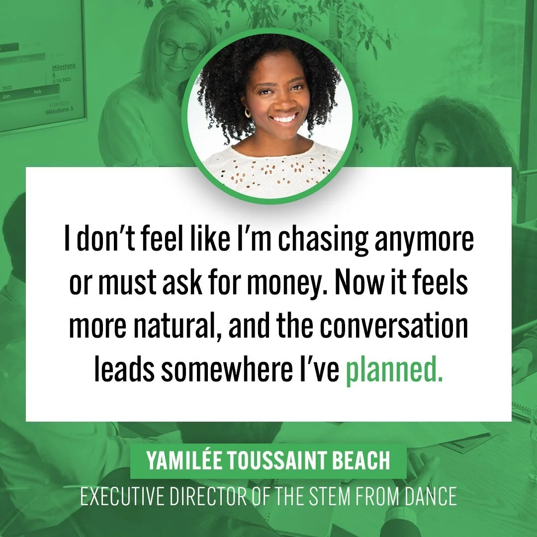 On this month’s podcast, you’re hearing straight from my client, Yamilée Toussaint Beach, Founder and CEO of STEM From Dance, a national organization headquartered in New York City. As a Mechanical Engineer and Dancer, Yamilée is a perfectly balanced right brain and left brain individual. Those types of people make the best leaders AND the best fundraisers in my book!
